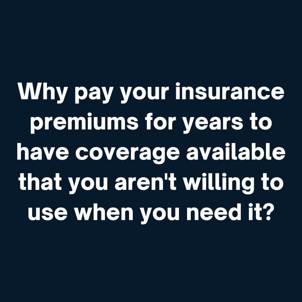 “Why pay your insurance premiums for years to have coverage available that you aren’t willing to use when you need it?”
